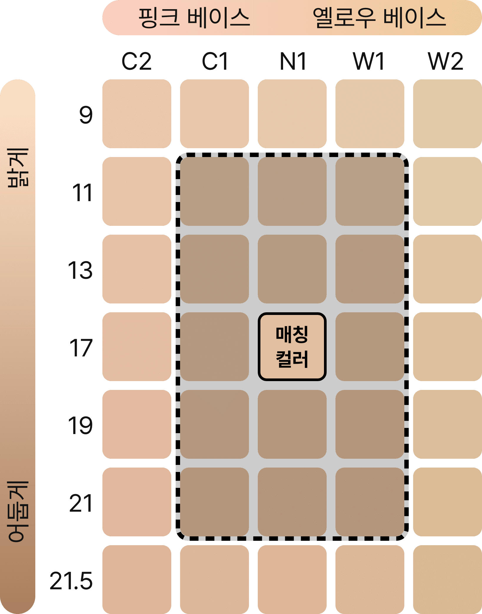 피부 톤은 1단계 범위 내에서 선택을 권장합니다